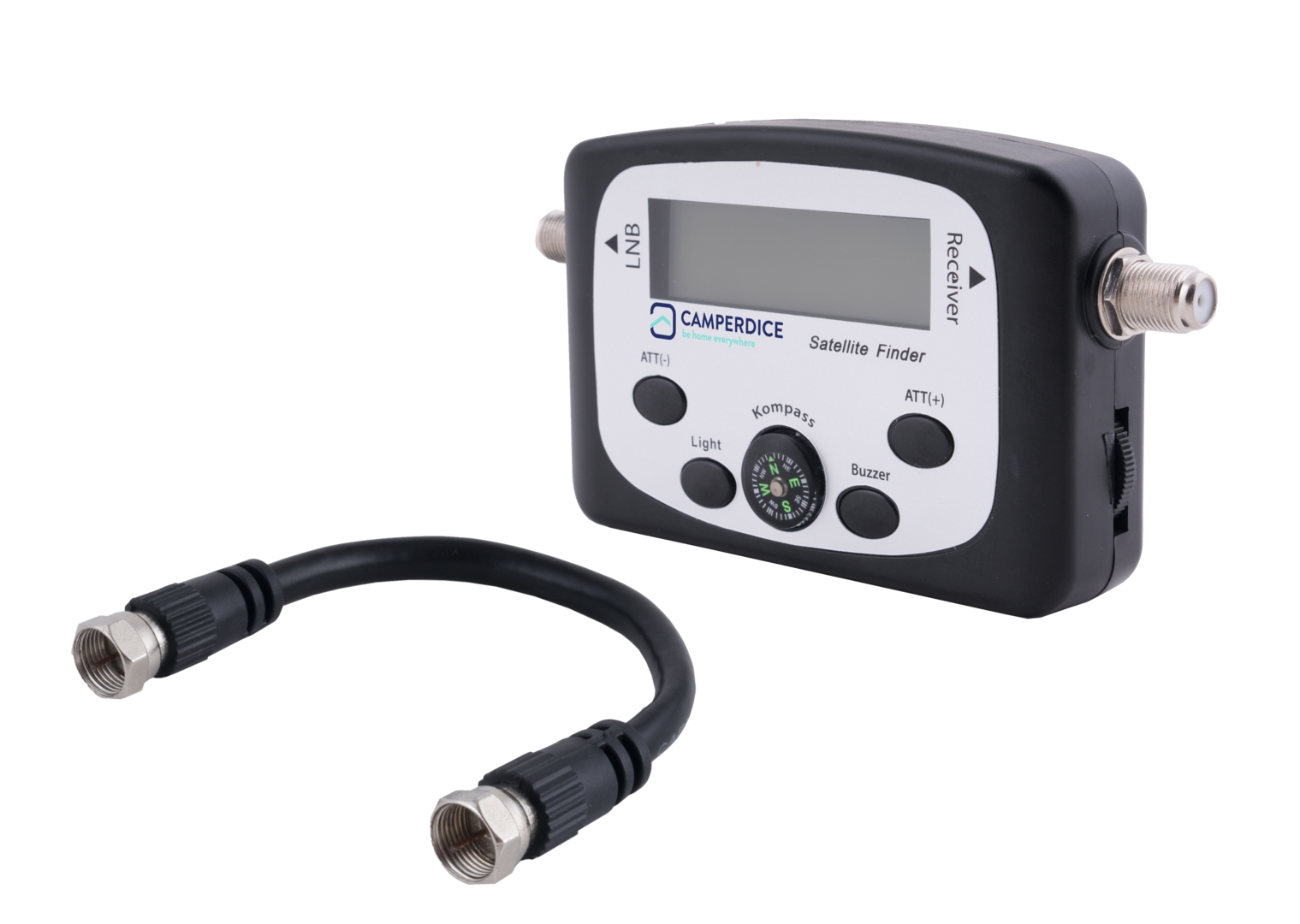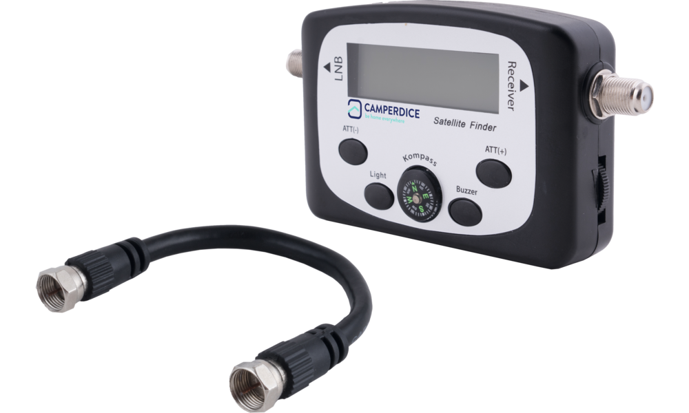 Der Sat-Finder beinhaltet einen integrierten Kompass sowie einen Dämpfungsregler für die Feinjustierung, die Ausrichtung ist dadurch leicht zu bestimmen.