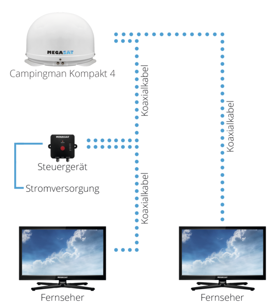 • Die Auswahl des Satelliten erfolgt wahlweise am Steuergerät oder über die App auf dem Mobilgerät.