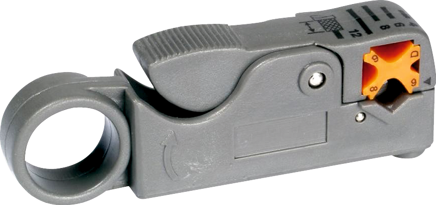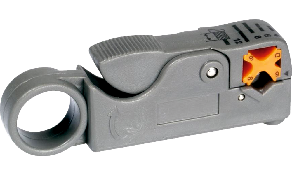 Die Abisolierung von Außenmantel, Abschirmung und Dielektrikum erfolgt in einem Arbeitsgang.
