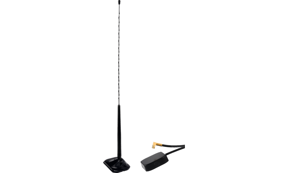 Aktive DAB+ Antenne, Kabel 3 m / SMB Anschluss (f), interne Speisung 12 V, geeignet für alle feststehenden Fahrzeugscheiben, kein Massenanschluss erforderlich.