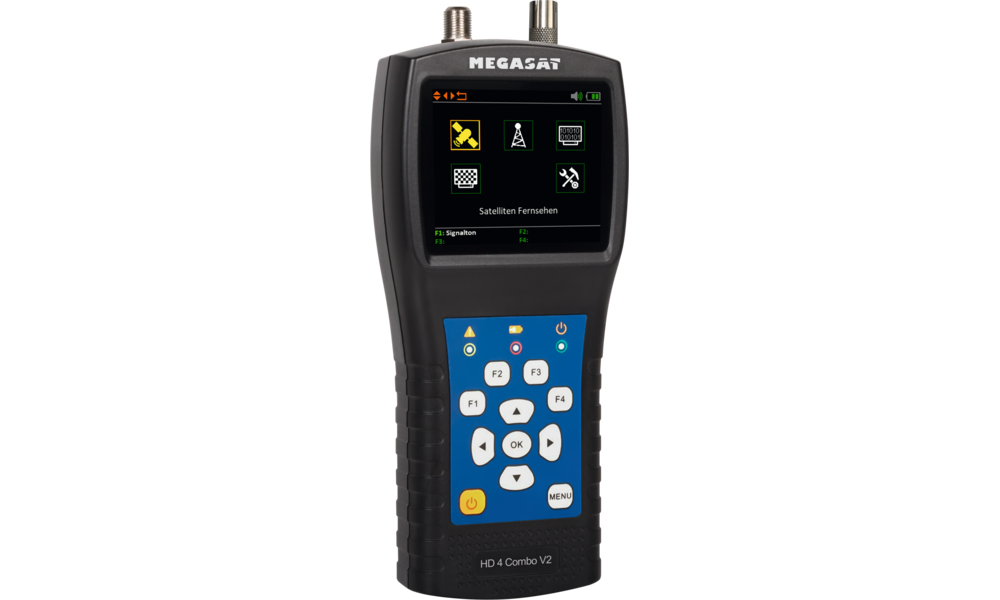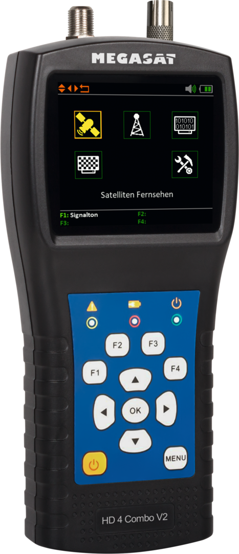 Lieferumfang: Satmessgerät HD 4 Combo, 230 Volt Netzteil, 12 Volt KFZ-Ladeadapter, Schutzhülle inklusive Tragegurt, F-Koaxialadapter, Bedienungsanleitung.