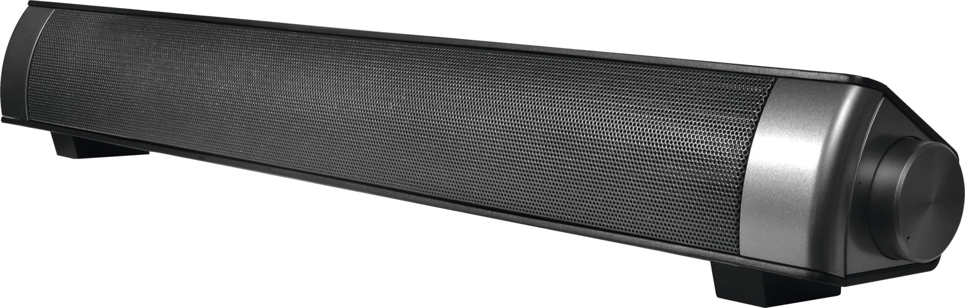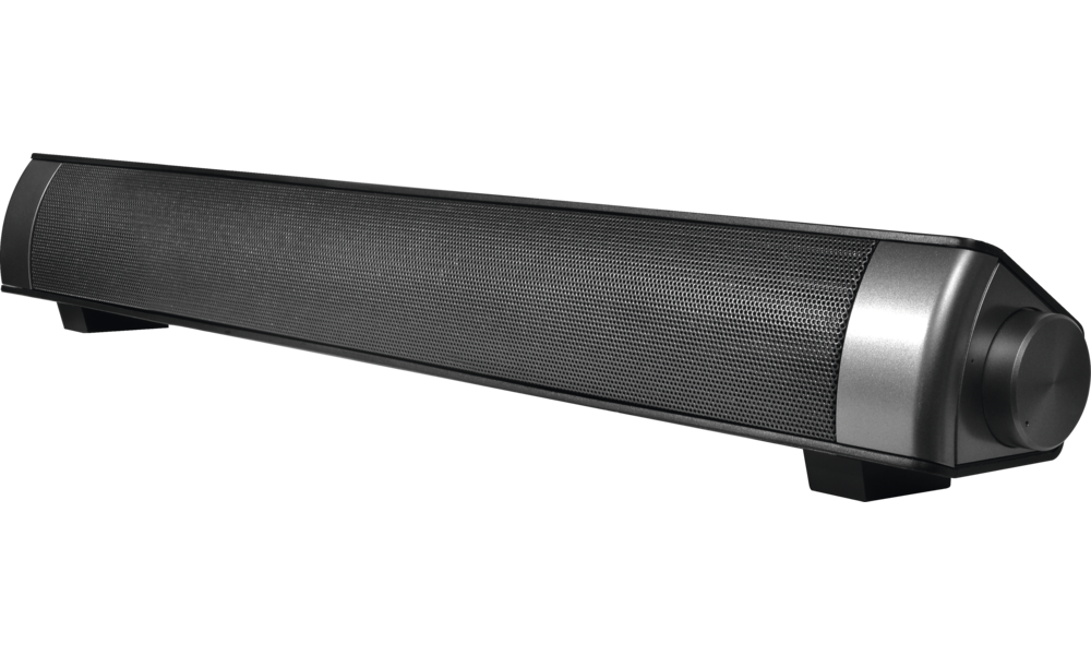 Die Soundbar wird über den USB Anschluss des Fernsehers mit Strom versorgt und Audiosignale werden anschließend über die Kopfhörerbuchse übertragen. Die Befestigung an der Unterseite des TVs erfolgt mit der beiliegenden Halterung. Die Breitband-Stereo-Lautsprecher mit max. 48 Watt Leistung bieten einen angenehmen Klang und ersetzen die im TV integrierten Standard-Lautsprecher.