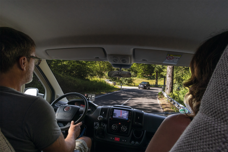 Head-Up-Display-Erweiterung für Fiat Ducato 7/Citroën Jumper/Peugeot Boxer in Verbindung mit AVIC-Z1000DAB-C (Nr. 89169). Mögliche Darstellung je nach Fahrzeugausstattung: Geschwindigkeit, Navigationshinweise/Turn-by-Turn, Tempolimit, Spurassistent.