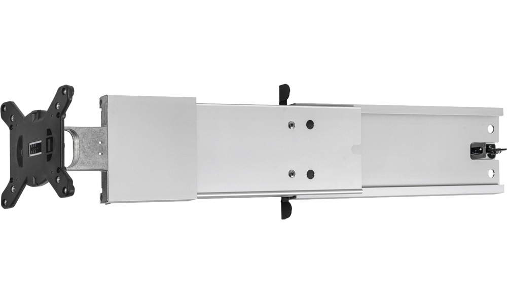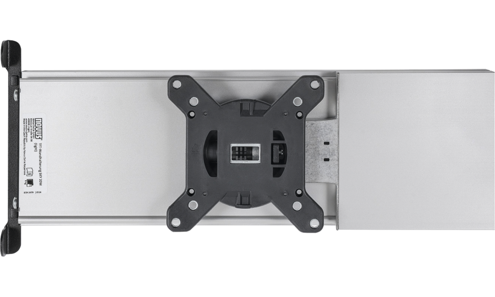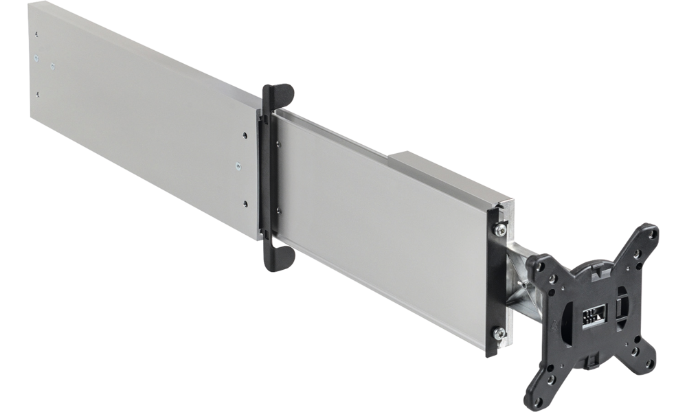 VESA-Halterung 75 x 75 mm und 100 x 100 mm, mit Neigungsverstellung +/- 14,5°. Abmessungen zusammengeklappt 389 x 161,4 x 55 mm, Länge