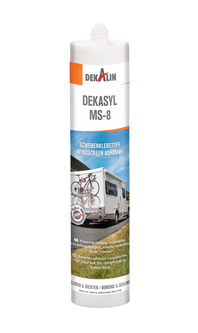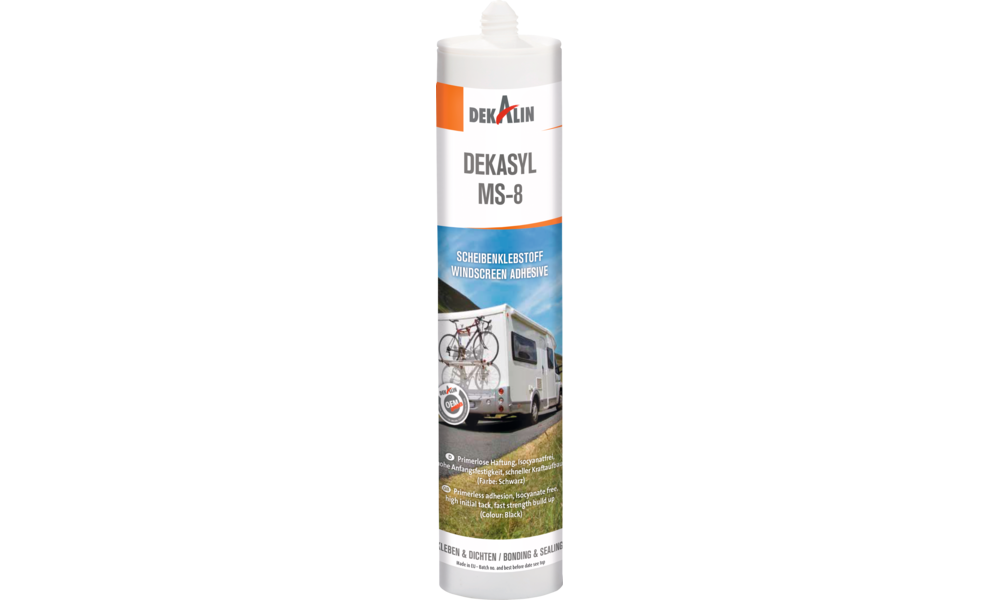 Scheibenklebstoff auf MS-Polymerbasis mit einer sehr hohen Anfangsfestigkeit und einem schnellen Kraftaufbau zur Direktverglasung mit einer Wegfahrzeit von ca. 60 Minuten.