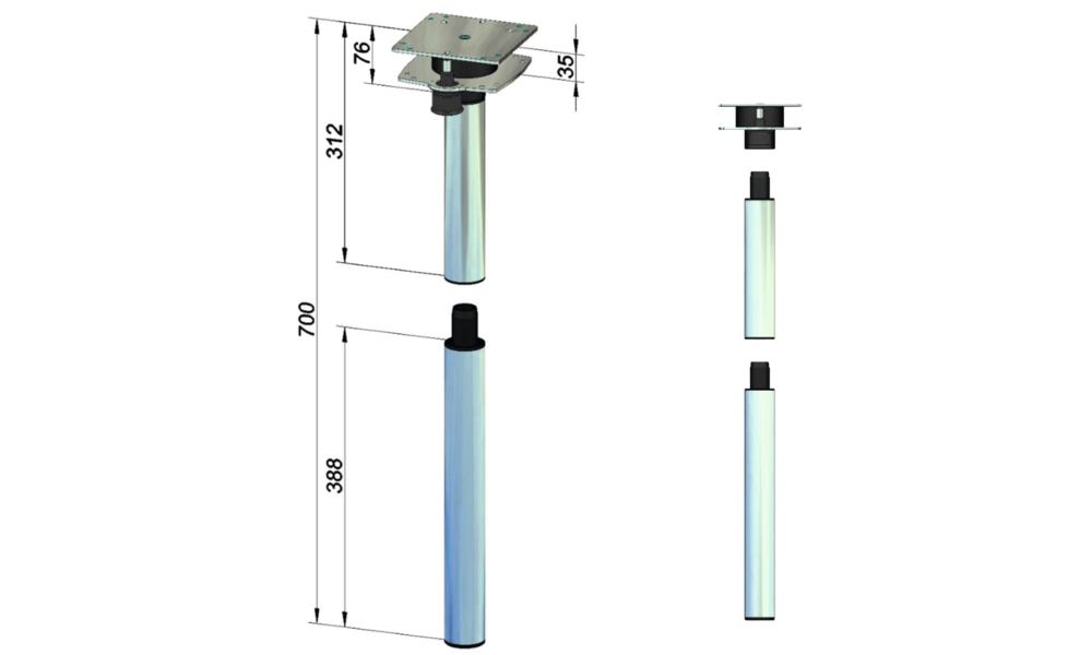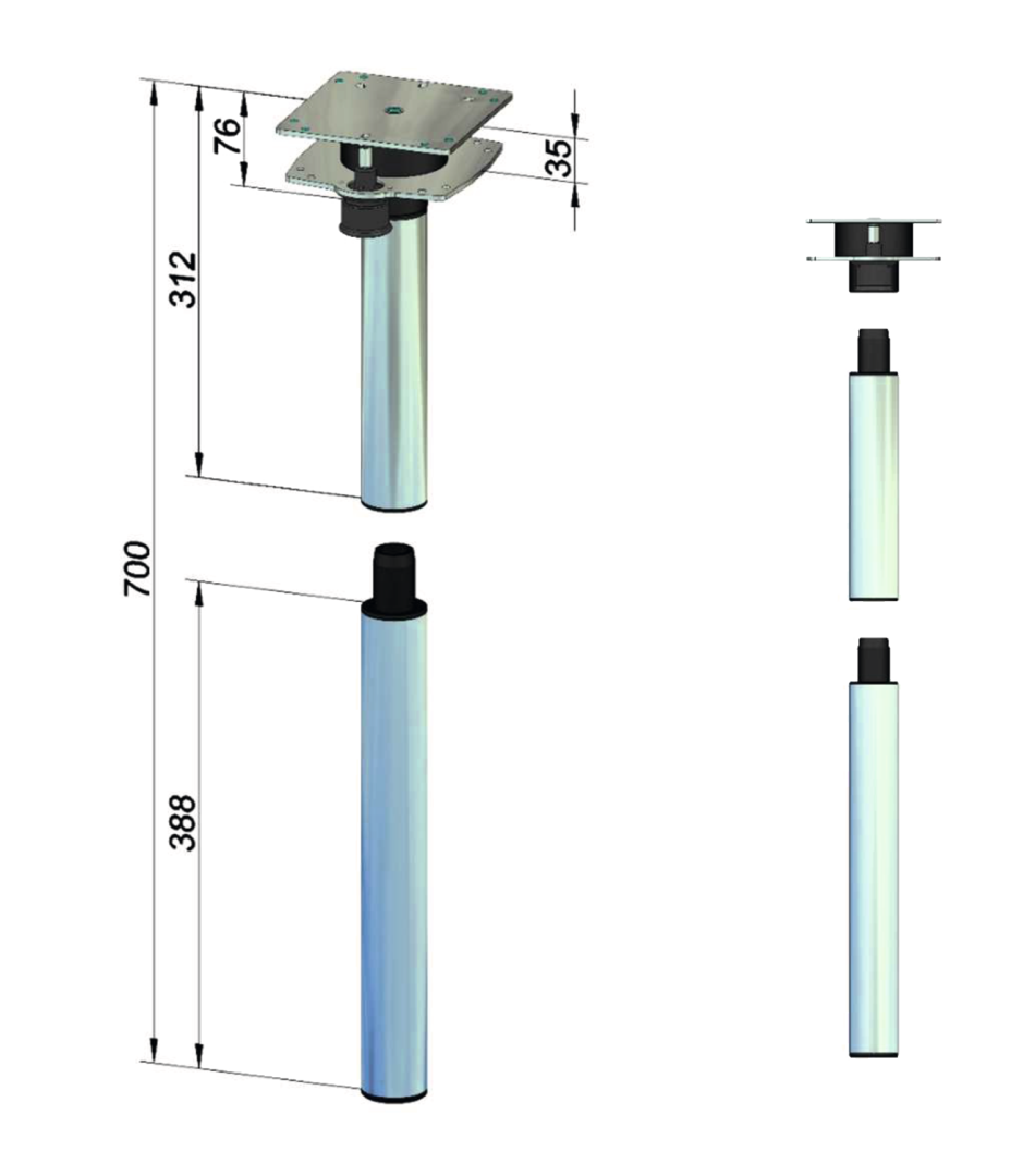 • Höhe bis Unterkante obere Tischplatte 700 mm