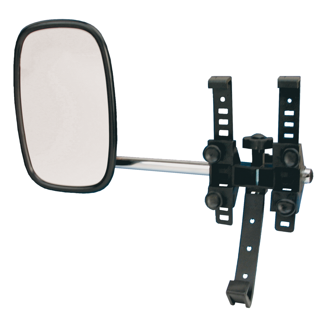 Bei Nichtgebrauch kann die Befestigung am Fahrzeug bleiben. Der Spiegel mit Stange kann bei Bedarf schnell und einfach aufgesteckt und abgenommen werden.