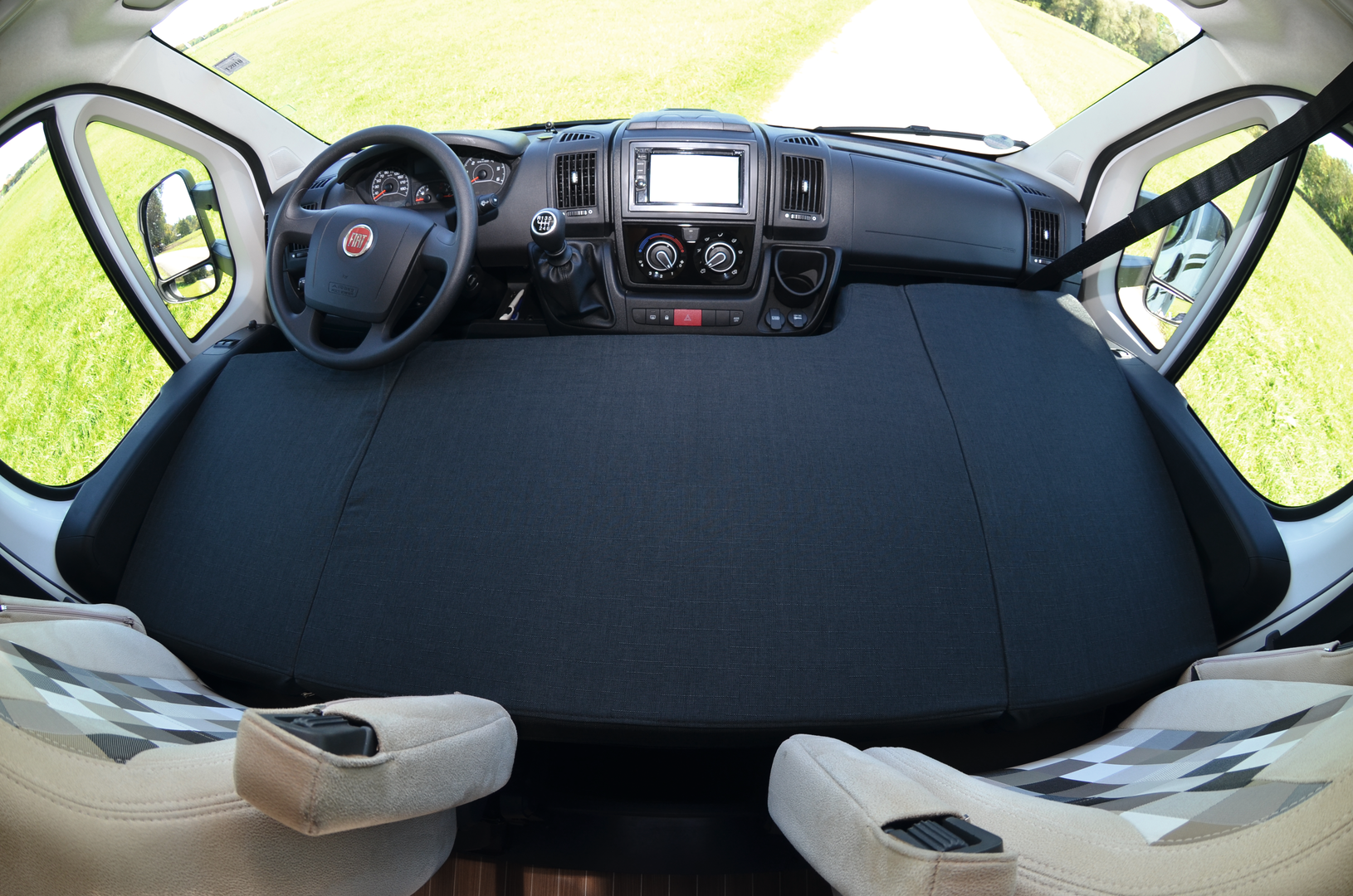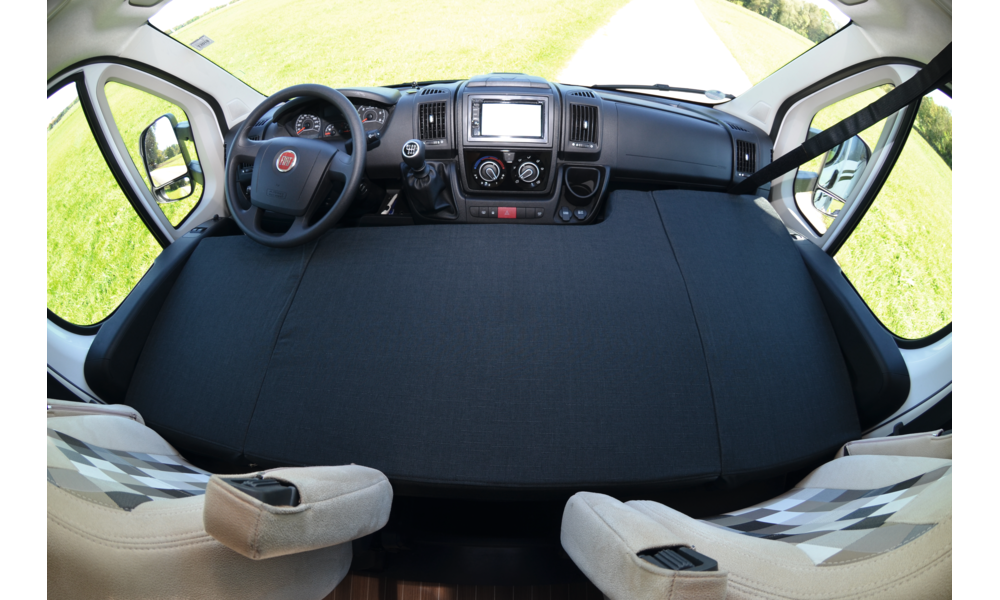 Fahrerhaus-Matratze CampSleep Standard. Die Ausführung Standard ist für Fiat Ducato, Mercedes Sprinter, Ford Transit, VW Crafter, Peugeot Boxer, Renault Master, Citroën Jumper und Iveco Daily geeignet.