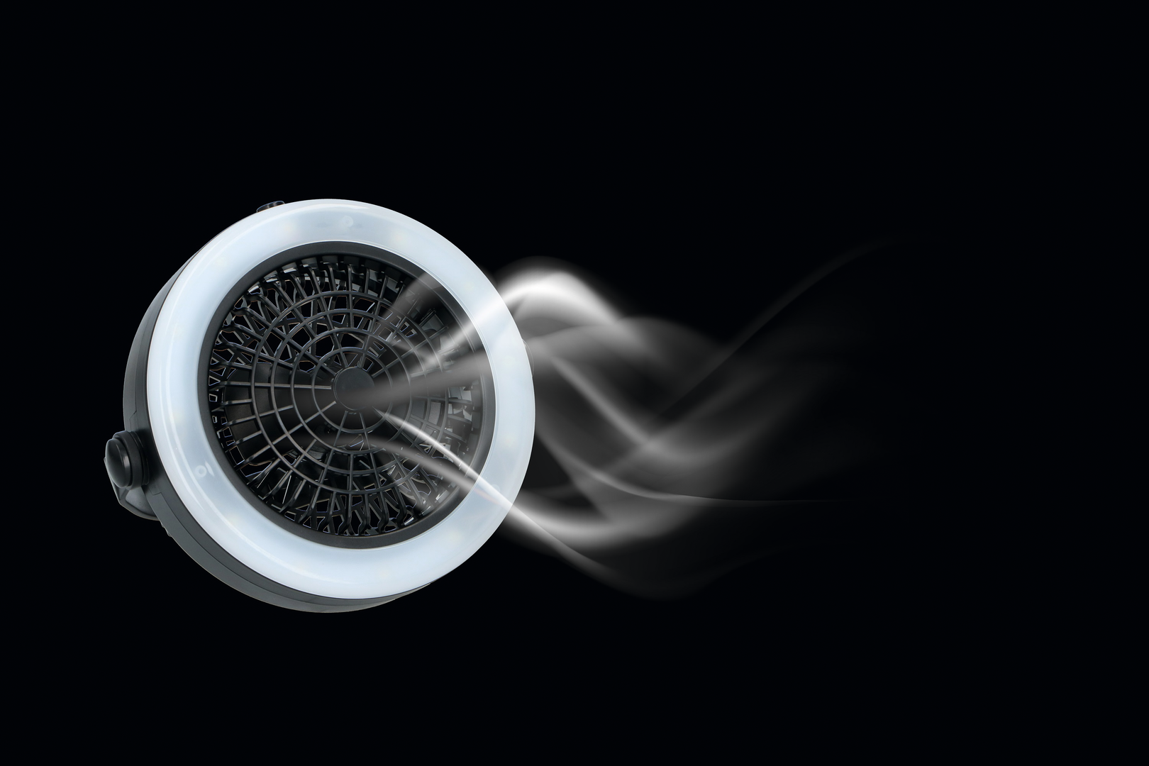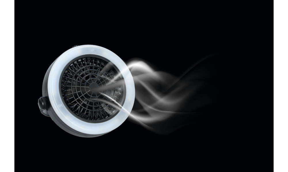 Batteriebetriebener Ventilator mit LED-Campinglampe (12 LED´s warmweiß).