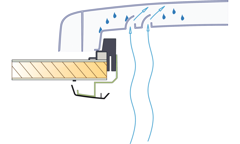 Für Dachstärken getöntes Haubenmaterial. Moderner Innenrahmen mit Doppelplissee. Rahmenfarbe Weiss.