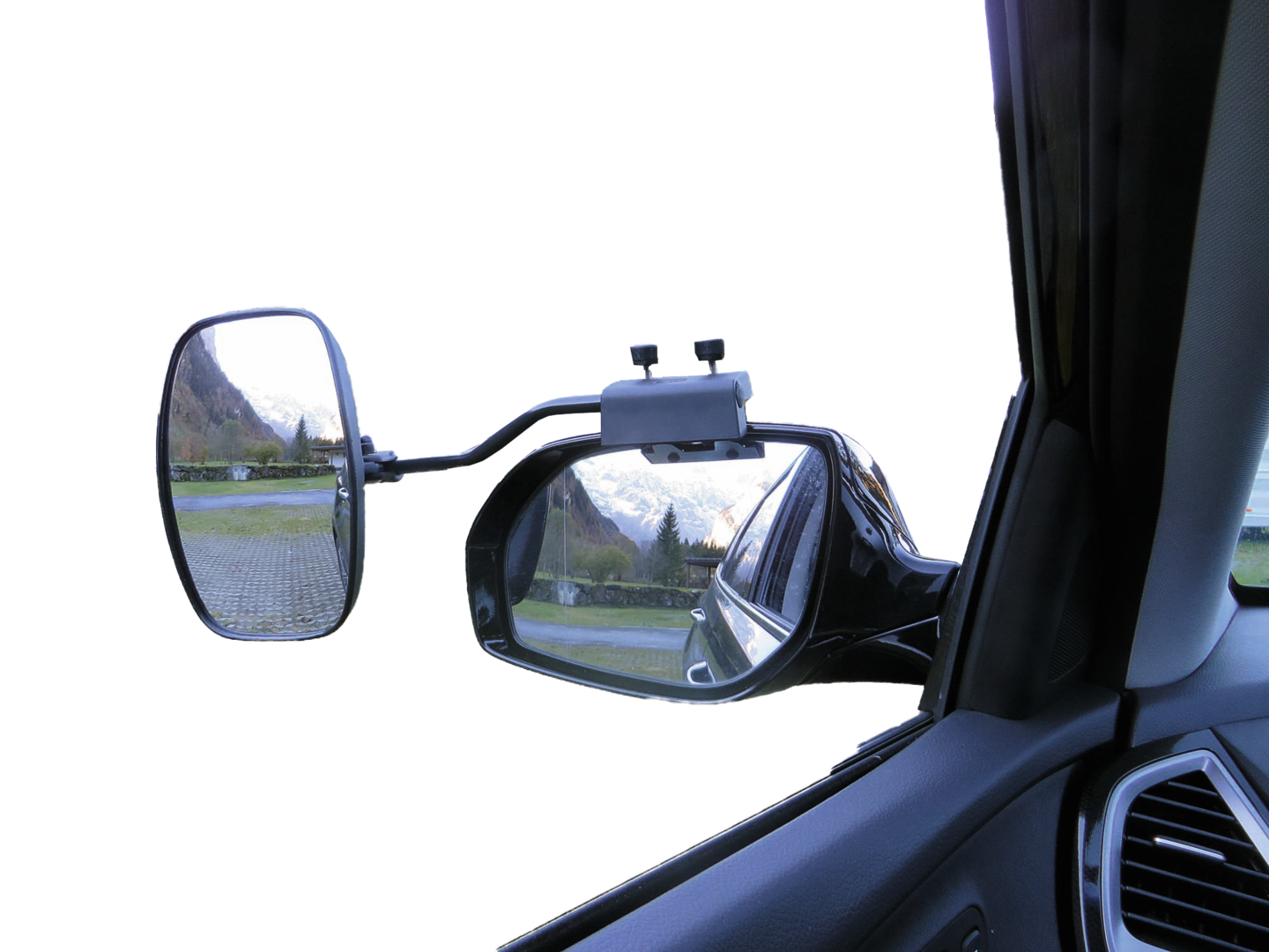 Der UNIVERSA PRO XL Caravanspiegel wird komplett im Set, Halter rechts und links, zwei Spiegeln sowie den Druckstücken N und NT für Fahrzeuge mit Gehäusenut inklusive Montageanleitung geliefert.