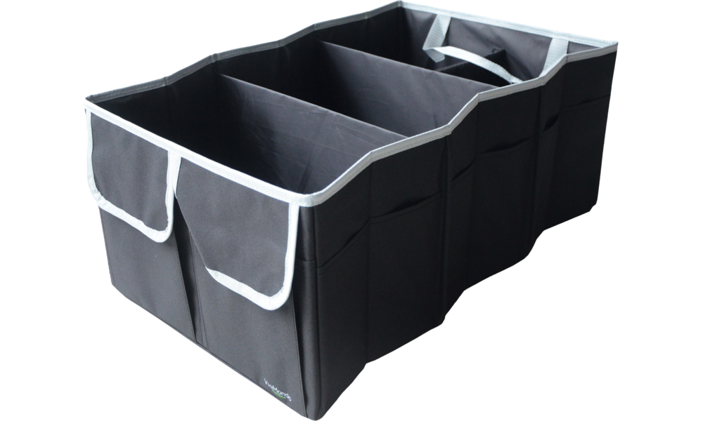 Faltbare Aufbewahrungsboxen mit Griffen.