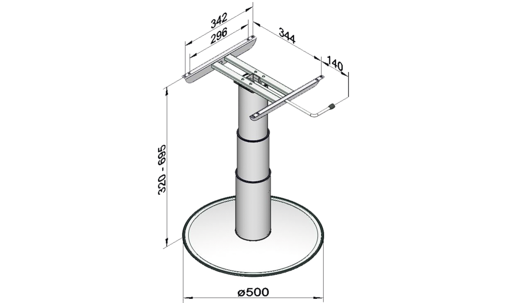 • Obere Höhe bis Unterkante Tischplatte 695 mm