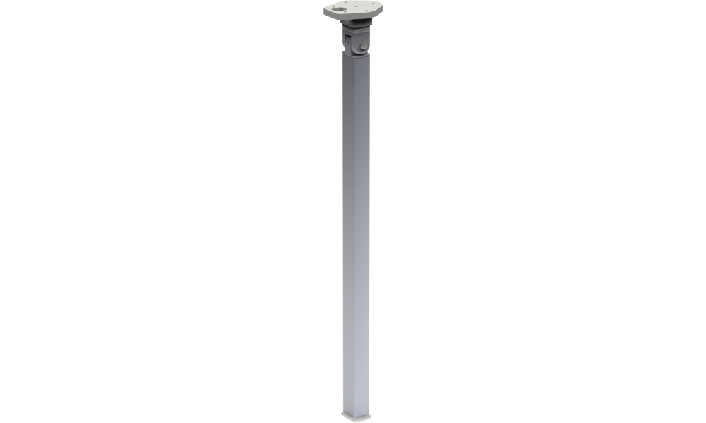 Oben klappbarer Gelenkstützfuß aus extrudiertem, eloxiertem Aluminium.