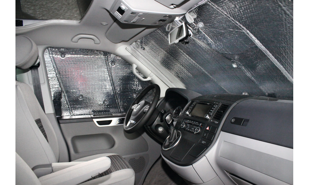 Durch die maßgenaue Passform bieten sie Schutz gegen ungewünschte Einblicke von außen. Sie sind hergestellt aus der HINDERMANN THERMOFOLIE, die beidseitig mit einer alubedampften Polyesterfolie beschichtet sind. Die Kanten sind ringsum sauber eingefasst. Entlang der Oberkanten befinden sich Zugschlaufen. Die Befestigung erfolgt mittels großflächiger Qualitätssauger, die festen Halt an den Scheiben bieten. Sie sitzen in vormontierten Clipösen, die nicht ausreißen. Die Sauger mit Rändelschrauben liegen lose bei und sind nicht montiert. Die Isoliermatten für die Fahrerhaus-Seitenscheiben sind so dimensioniert, dass die Außenkonturen durch das Türgummi eingeklemmt werden und somit zwischen Fenstermatte und Fensterglas ein isolierendes Luftpolster entsteht.