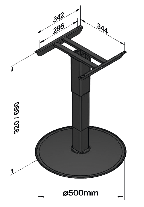 • Obere Höhe bis Unterkante Tischplatte 680 mm