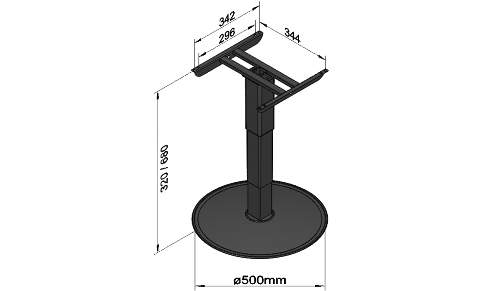 • Untere Höhe bis Unterkante Tischplatte 320 mm
