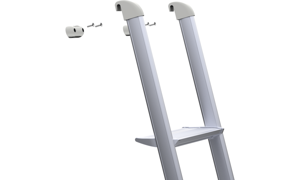 Extra breite, stufenförmige Sprossen für maximalen Komfort.