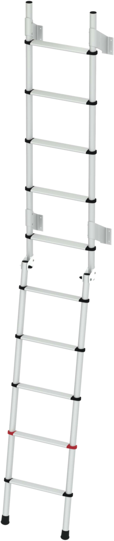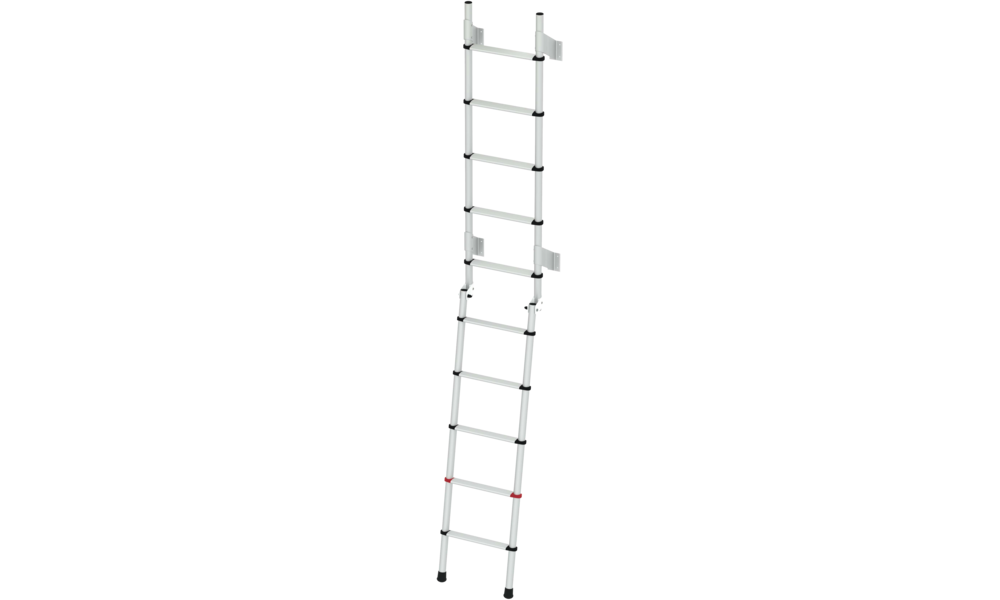 Mit 10 Stufen. Wird während der Fahrt zusammengeklappt.