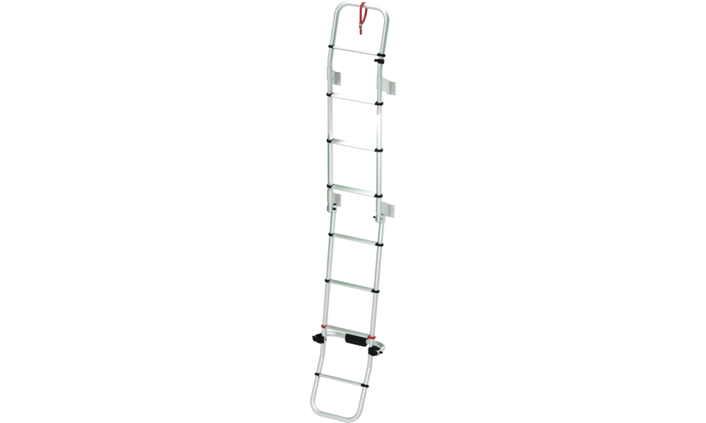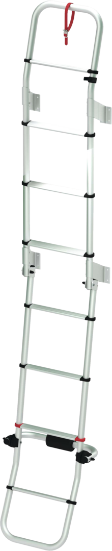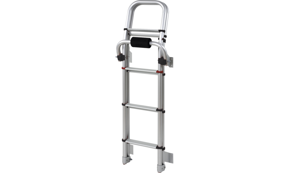 Mit 8 Stufen. Wird während der Fahrt zusammengeklappt.