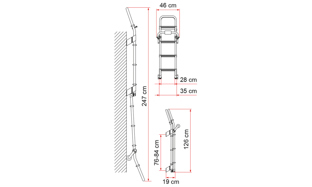 Länge 247 cm Breite / Tiefe 46 cm Gewicht 5,5 kg
