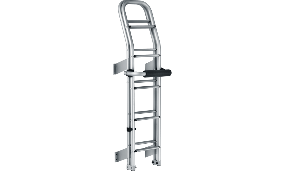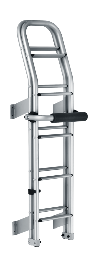 Einklappbare Doppelleiter für die Rückwandmontage.