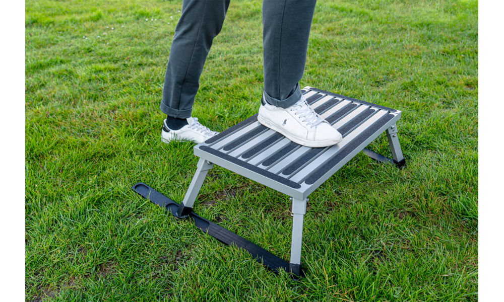 Die Tasmania Trittstufen-Stützen sind für viele verschiedene Trittstufenmarken geeignet. Neben der Verwendung für Trittstufen können die Kunststoffleisten auch zur Stabilisierung eines Campingschranks oder anderer Möbel verwendet werden.