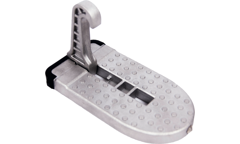 So gewinnen Sie eine weitere Tritthöhe von ca. 50 cm. Mit Anti-Rutsch-Profil für sicheren Halt. Die Tritthilfe kann aufgrund der Stahlspitze an der Vorderseite auch als Sicherheitshammer verwendet werden.