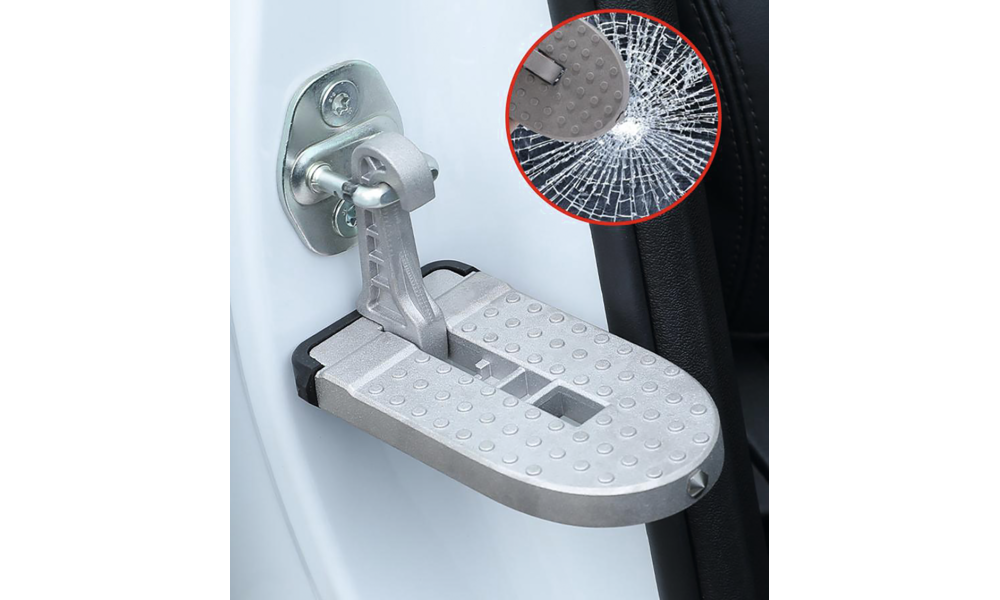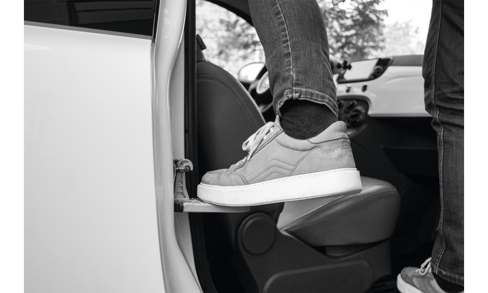 Die Tritthilfe wird einfach an der Innenseite der offenen Türe eingehängt.