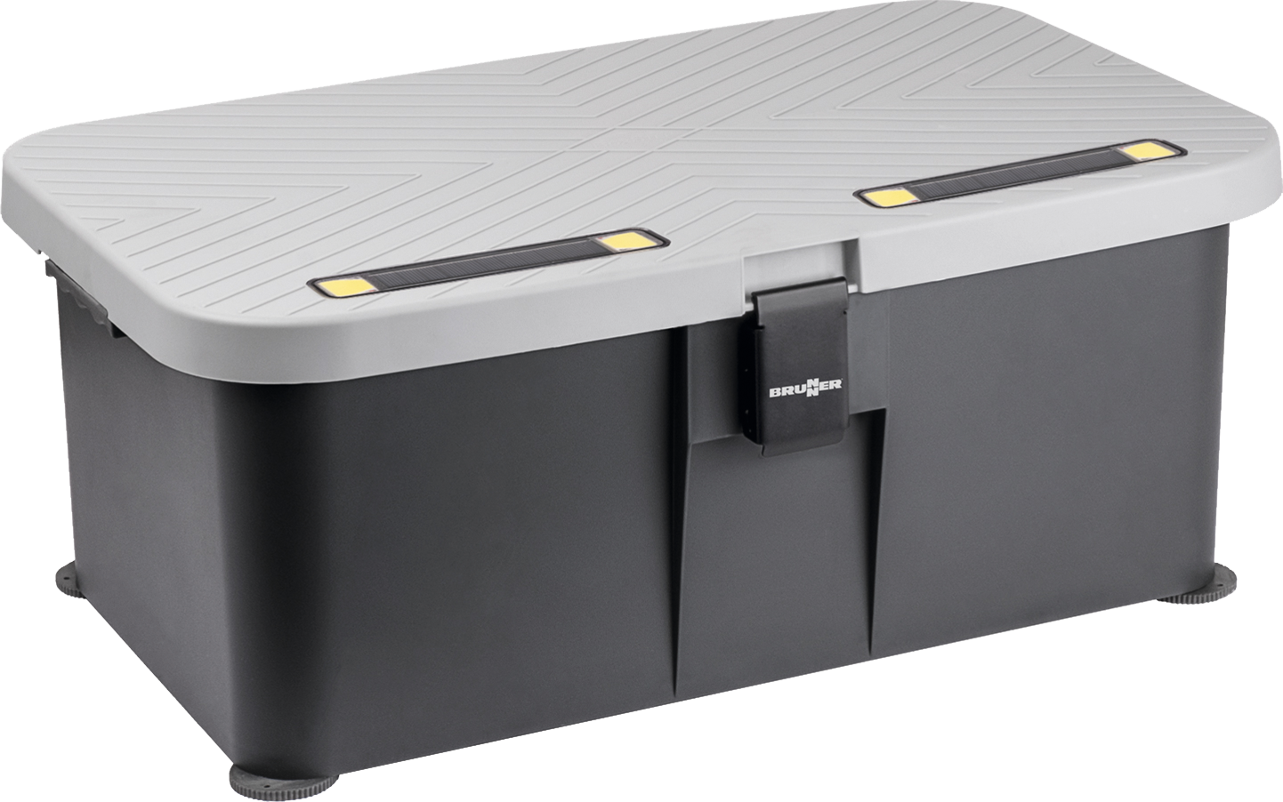 Der verschließbare Deckel ist mit einer rutschfesten Trittfläche ausgestattet und verfügt zudem über ein integriertes solarbetriebenes Sicherheits- und Orientierungslicht. Hochwertige, sehr stabile Kunststoffkonstruktion mit Drehfüßen zum Niveauausgleich.