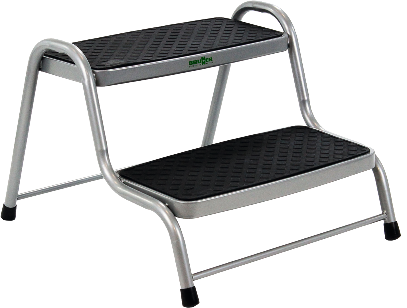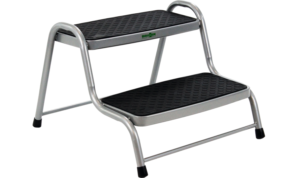 Doppeltrittstufe mit großflächiger, rutschfester Gummi-Trittfläche.