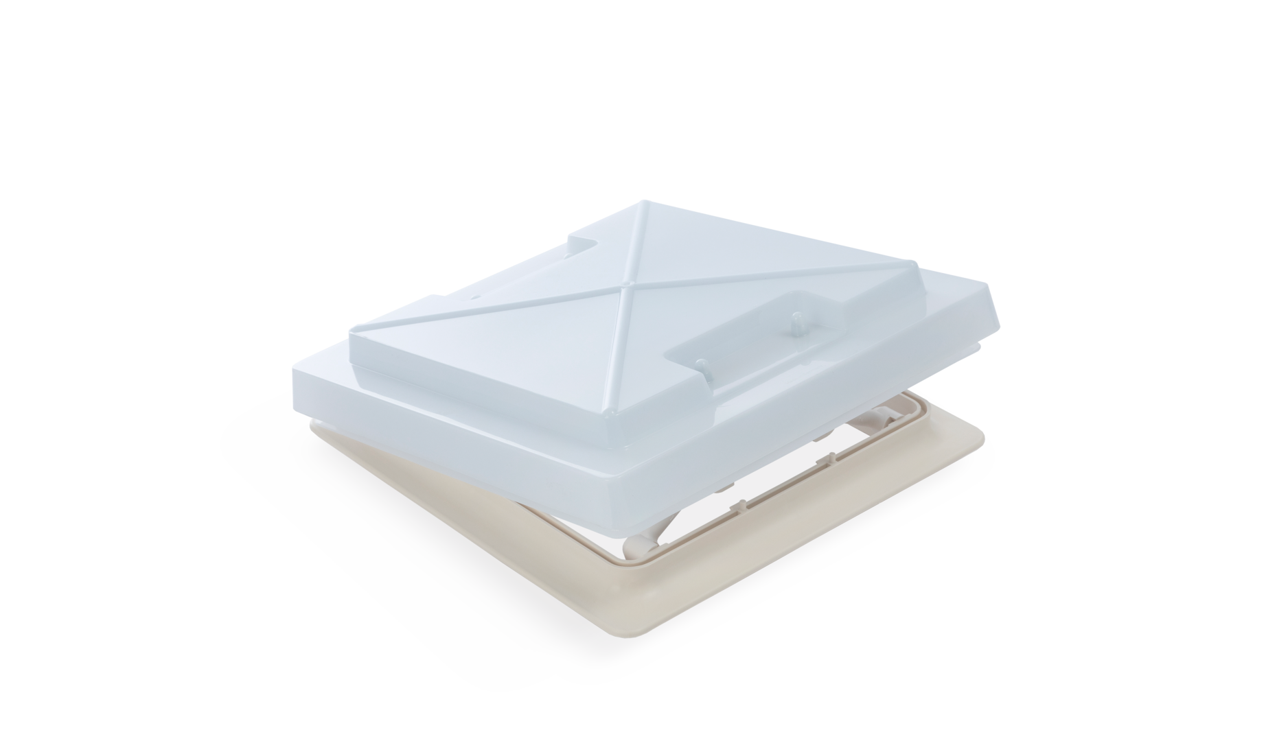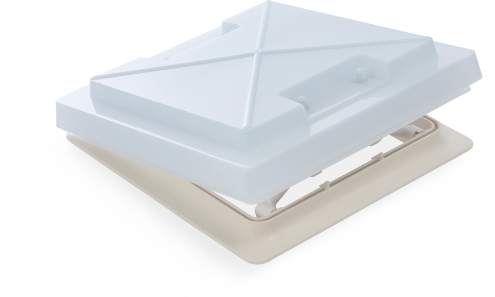 Klassische Milchglashauben mit Teleskopaufstellern, 4-seitig aufstellbar, Dauerlüftung zwischen Hauben.