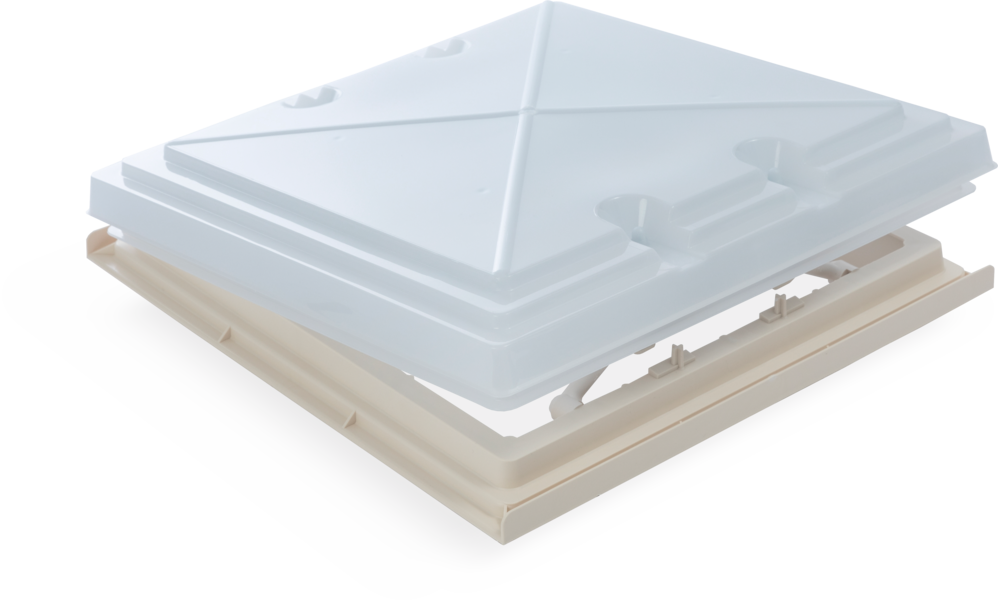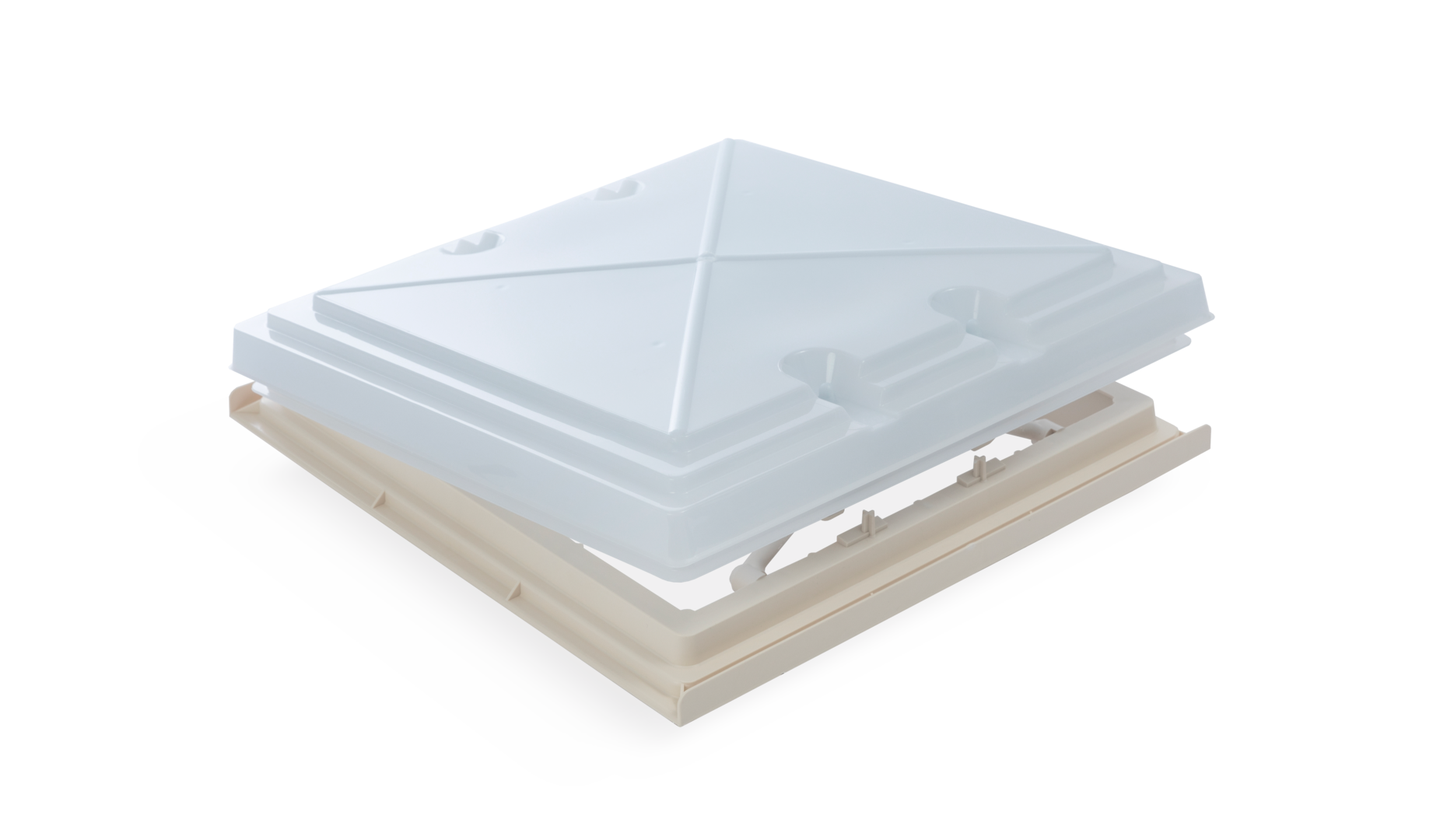 Klassische Milchglashauben mit Teleskopaufstellern, 4-seitig aufstellbar, Dauerlüftung zwischen Hauben.