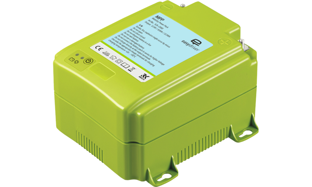 Ladung über Netzkabel, Lichtmaschine, Solar-Panel oder Brennstoffzelle ermöglicht in der Praxis je nach Situation 15- bis 20-minütiges Rangieren