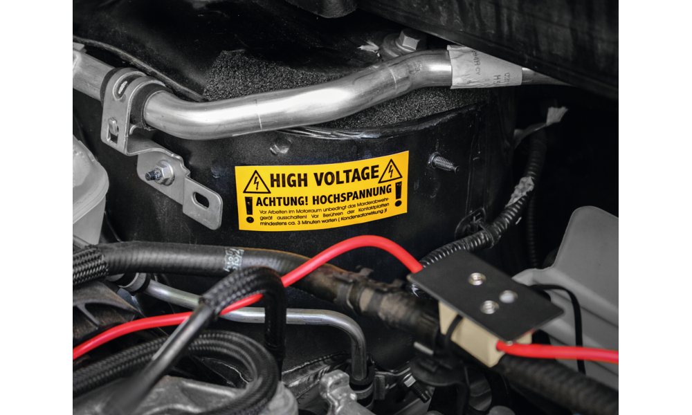 1 x gelb blinkende LED, 1 x dauerhaft rot leuchtende LED. Kabellänge (-) 40 cm, (+) 160 cm, Steuerkabel 120 cm, Hochspannungskabel 400 cm.