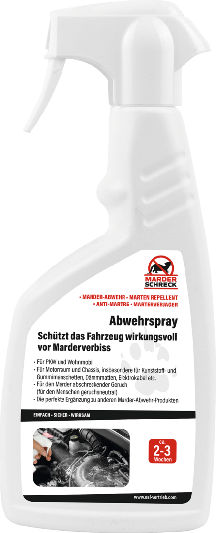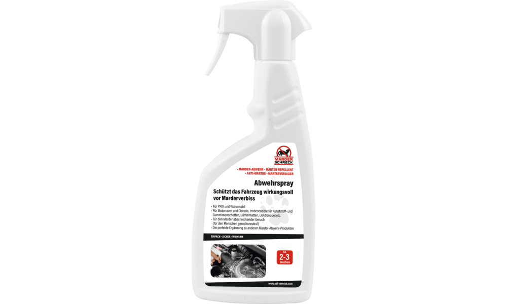 Für Motorraum und Chassis, insbesondere für Kunststoff- und Gummimanschetten, Dämmmatten, Elektrokabel etc. Die perfekte Ergänzung zu anderen Marderabwehr-Produkten. Abschreckender Geruch für Marder (für Menschen nahezu geruchsneutral).