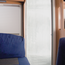 Die plissierte Insektenschutztür hat einen weißen, dekorativen Aluminiumrahmen und passt sich exakt in die Formgebung des Interieurs ein.