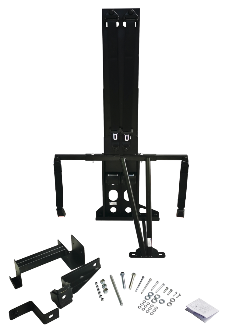 Mit Befestigungsmaterial und Sicherheitsgurten.