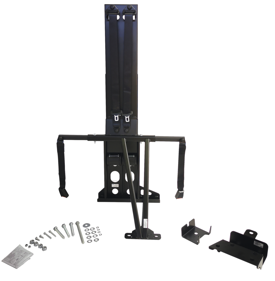 Mit Befestigungsmaterial und Sicherheitsgurten.