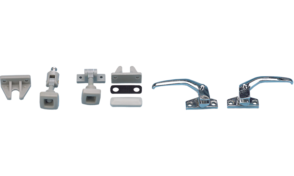 Aus Kunststoff. Farbe Grau. Fenster-Spindelverschluss mit Zweipunkt-Befestigung.