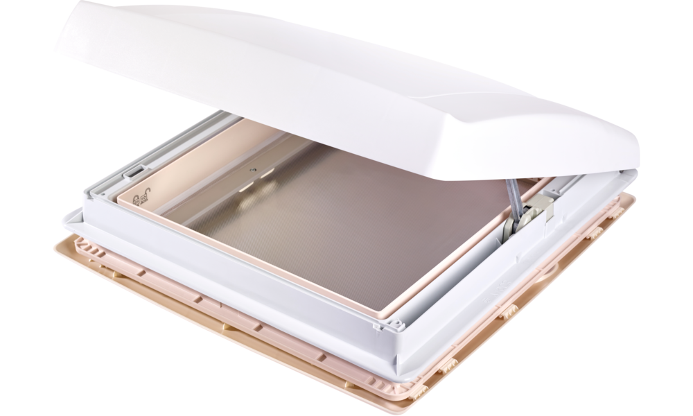 Dachausschnitt 400 x 400 mm. Haubenmaß 459 x 472 mm. Für Dachstärken von 25 - 60 mm (ab 40 mm Dachstärke wird das Kit, Nr. 92316 benötigt).