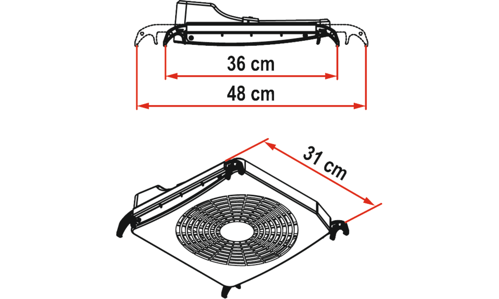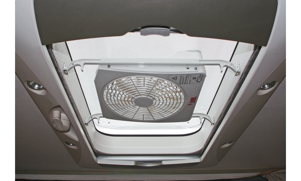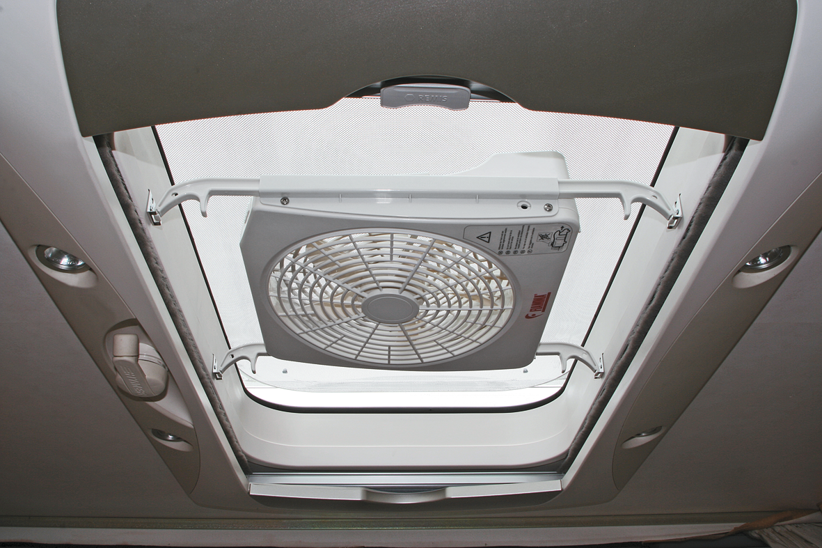 Der Turbo-Kit mit dem verstellbaren Klemmsystem ermöglicht das Einhängen ohne großen Aufwand in fast alle Dachhauben mit den Maßen 40 x 40 cm bis 50 x 70 cm (Fiamma Vent 50, Omni-Vent, Dometic Mini Heki, nicht bei Version Plus, Dometic Midi Heki).
