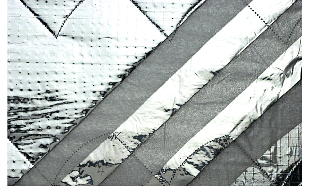 Vier Schichten reflektierende Folien und drei Schichten Schaumstofflagen.