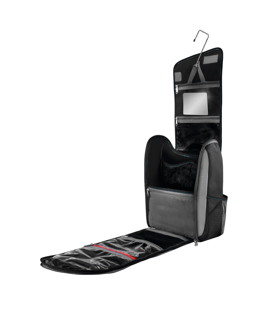 Thule Toiletry Kit. Perfekt für das Badezimmer. 13 verschiedene Taschen. Neben Staufächern für alltäglich benötigte Utensilien wurden zusätzliche Taschen für Erste-Hilfe-Artikel integriert. Inklusive abnehmbarem Spiegel. Der L-Haken sorgt dafür, dass es ganz einfach an einer Tür oder einem Haken aufgehängt werden kann. Abmessungen (BxH) geschlossen 35 x 40 cm, offen 35 x 115 cm.