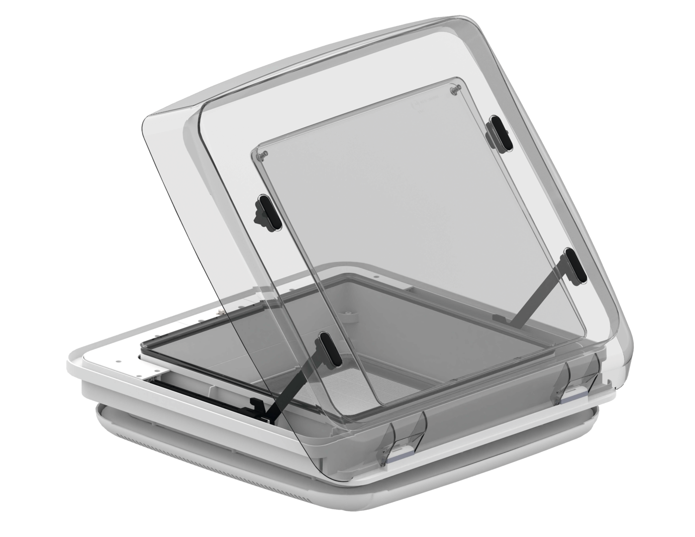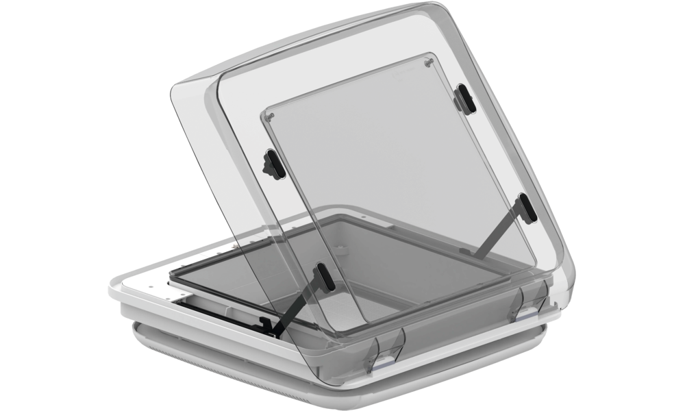 • Doppelte Arme zur gleichmäßigen Öffnung der Dachhaubenabdeckung