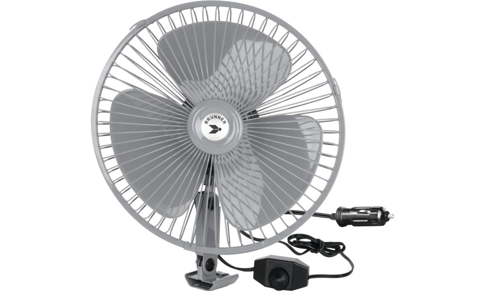 Leistungsstarker 12 V-Lüfter mit doppeltem Befestigungssystem (Schraubplatten- oder Clipbefestigung).