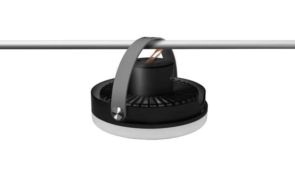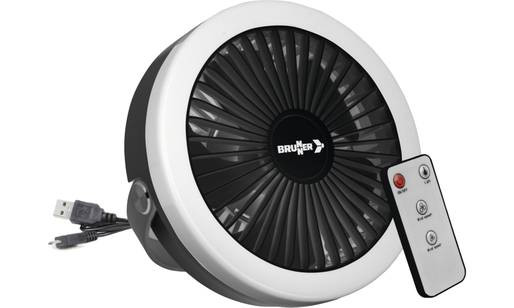 Design hat drei einstellbare Windgeschwindigkeiten und Helligkeitsstufen für optimalen Komfort. Ausgestattet mit einem praktischen Aufhängehaken lässt sich dieser Ventilator leicht an Zelten oder Vor-