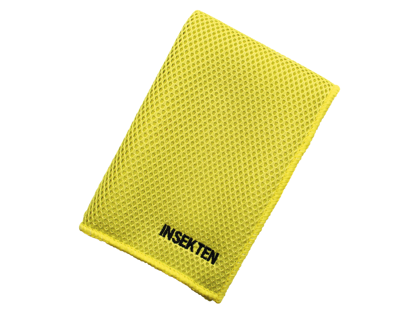 Insektentuch. Spezielle Struktur zur rückstandslosen Entfernung von Insektenverschmutzungen auf Glas- und Lackflächen.