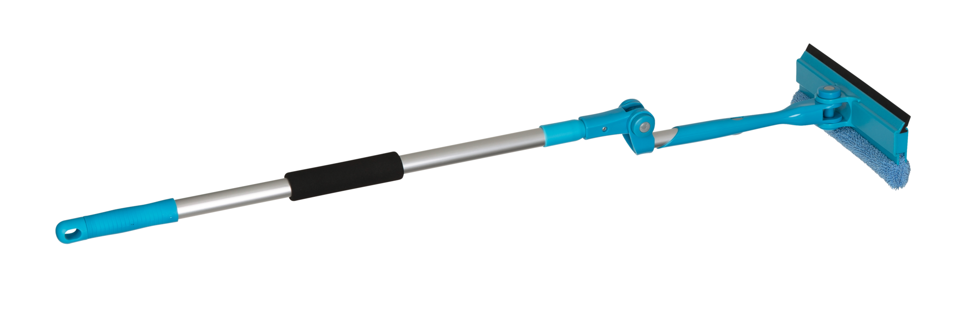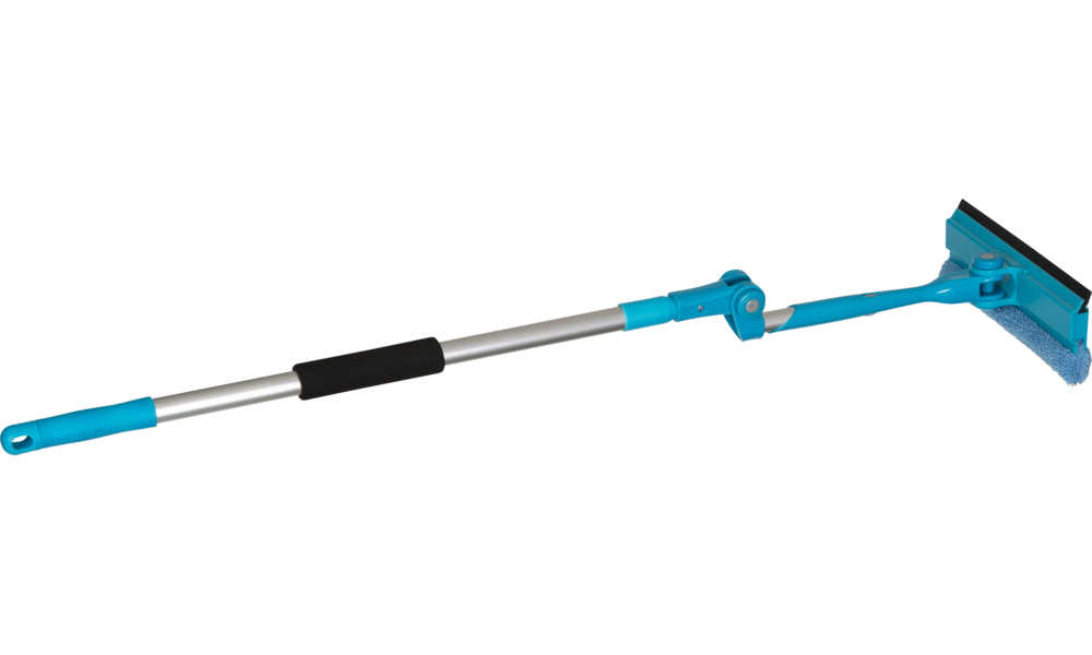 Microfaser-Scheibenreiniger BLUE MAGIC. Aluminium-Teleskopstab mit Soft-Griff und Aufhänge Öse. Die beiden rastbaren Gelenke ermöglichen nahezu einen Einsatzbereich von 360°. Abnehmbares Kopfteil mit Gummilippe sowie einem gepolsterten Microfaser-Bezug. Teleskopierbar von 68 - 117 cm.