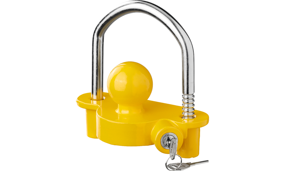 Der Bügel an der Oberseite kann an verschiedene Höhen angepasst werden, wodurch dieses Kupplungsschloss für nahezu jede Kugelkupplung (mit ø 50 mm) geeignet ist.